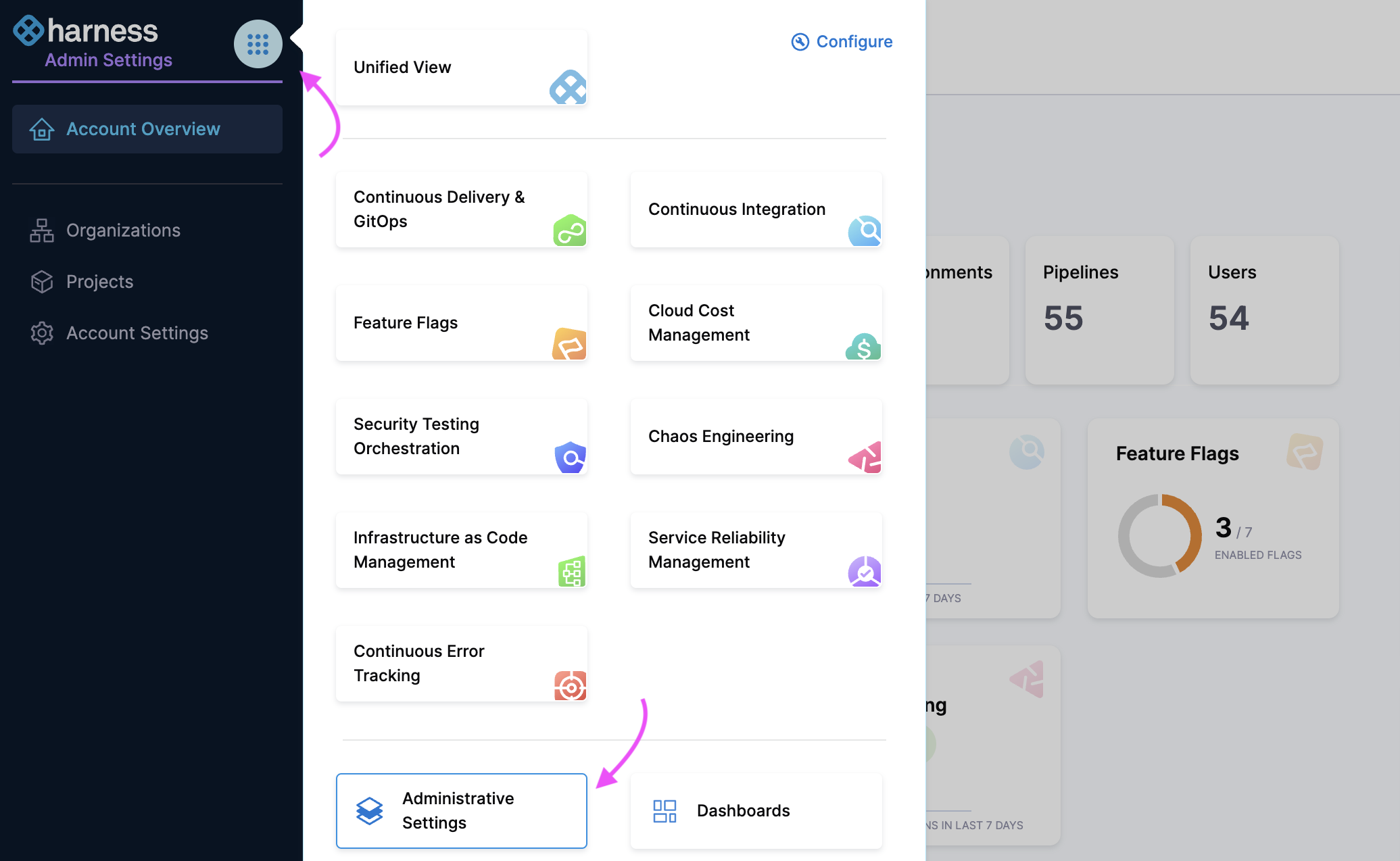 To verify SMTP configuration for your account, navigate to Administrative Settings.