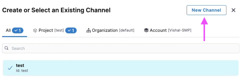 Click Select Channels. Choose channel/s that you configured earlier and select Apply Selected. To create a new channel, select New Channel.