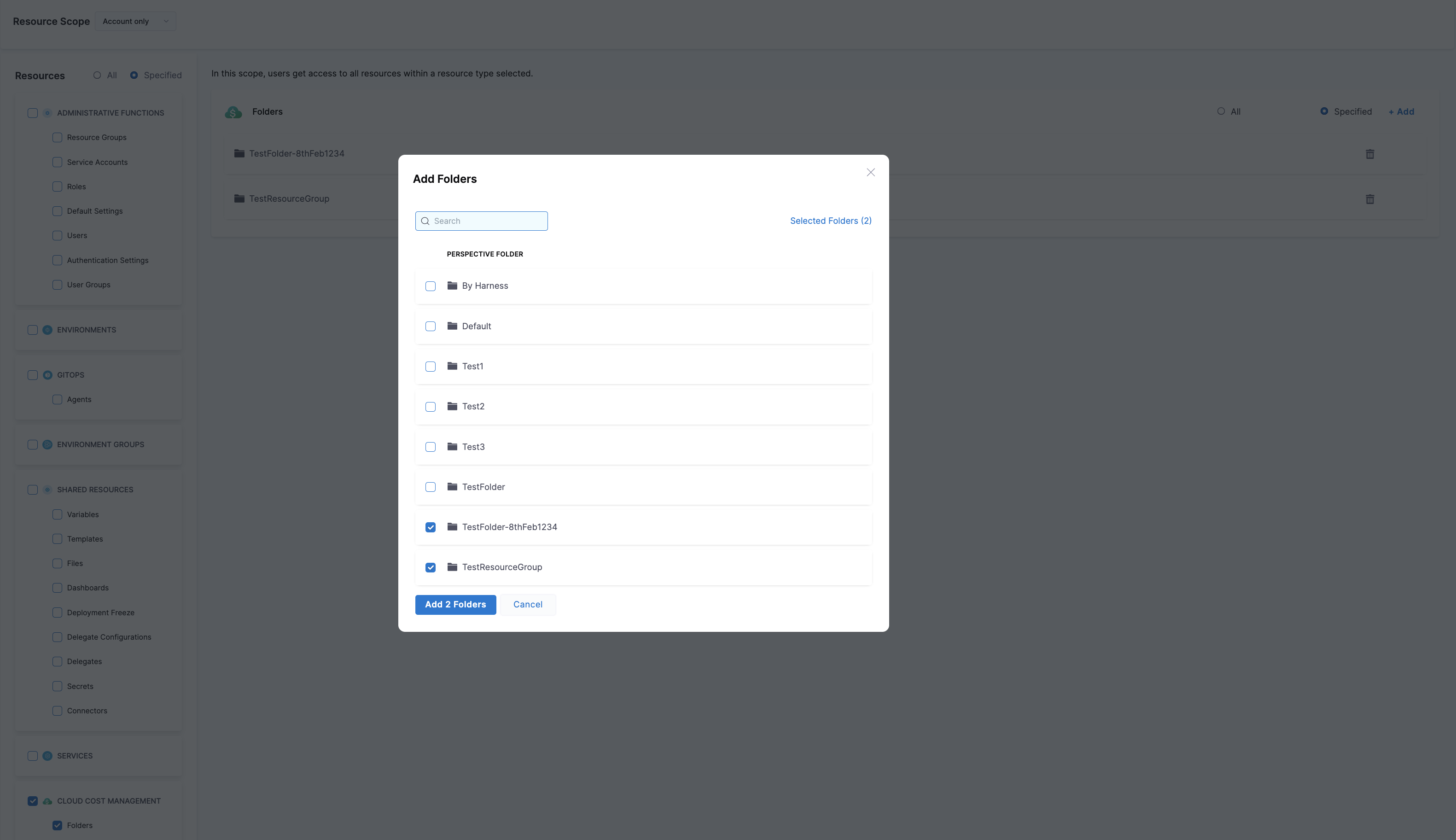 In Harness, the Perspectives page shows only the folders that the user has been granted access to. This means that the user cannot see or interact with any folder that they do not have permission to access.