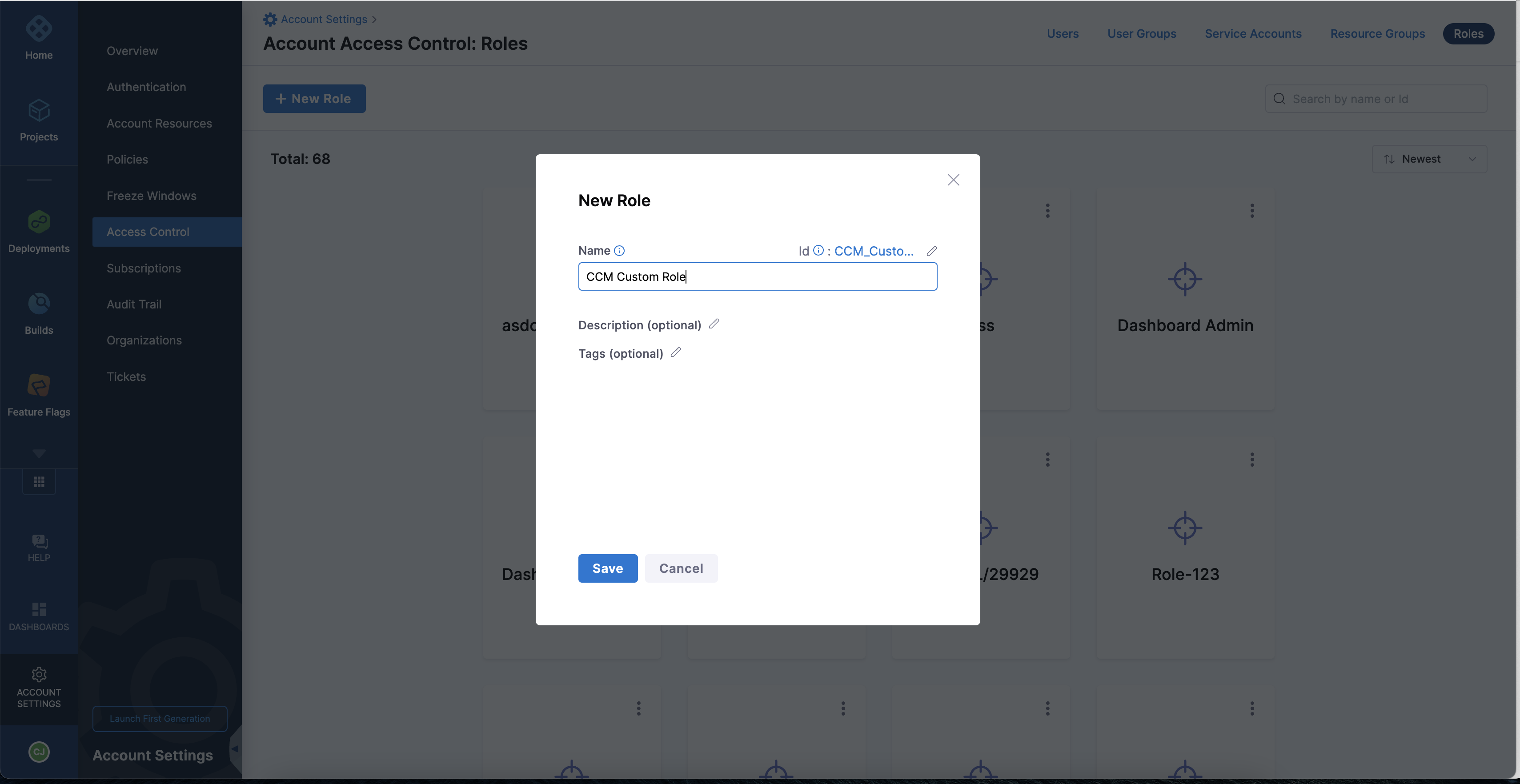 Click + New Role to create a custom role with the following permissions. For example, CCM Custom Role.