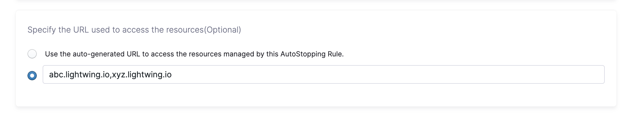 - Auto-generated URL: You can use the auto-generated URL to access the resources managed by this AutoStopping Rule.