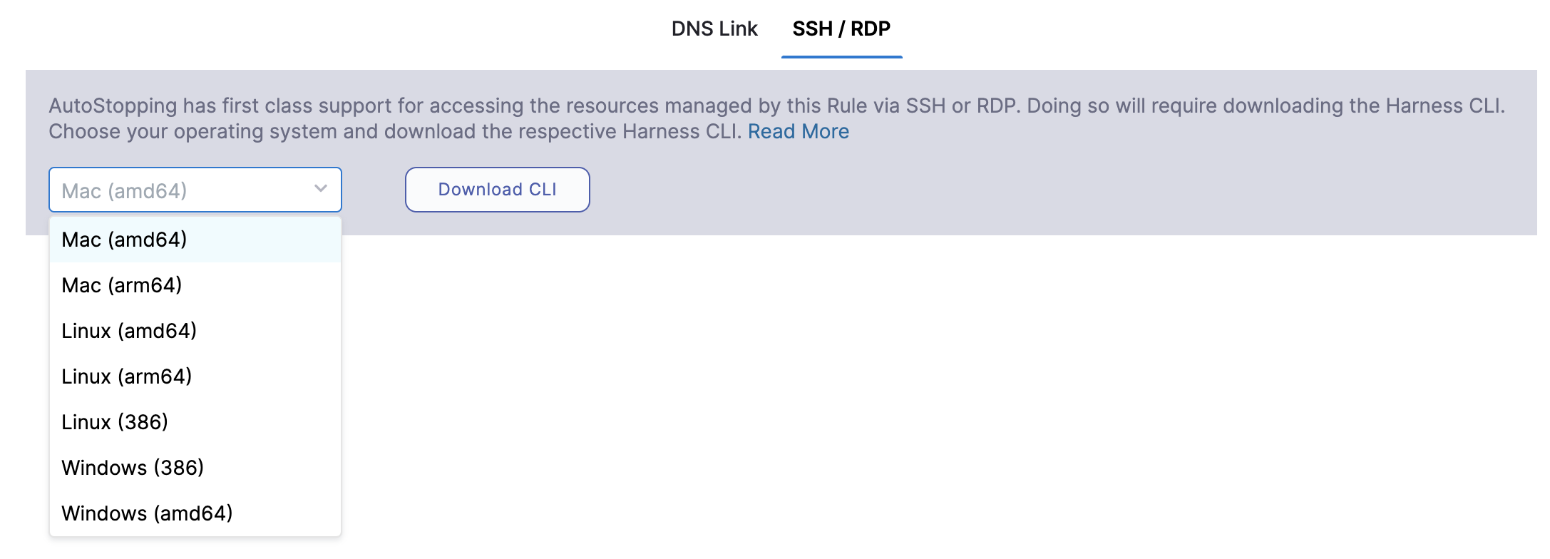SSH/RDP allows you to access the resources managed by the AutoStopping rule via SSH or RDP HTTPS URL. Select this option if the underlying applications running on the resources managed by AutoStopping Rule are accessed via SSH or RDP.
