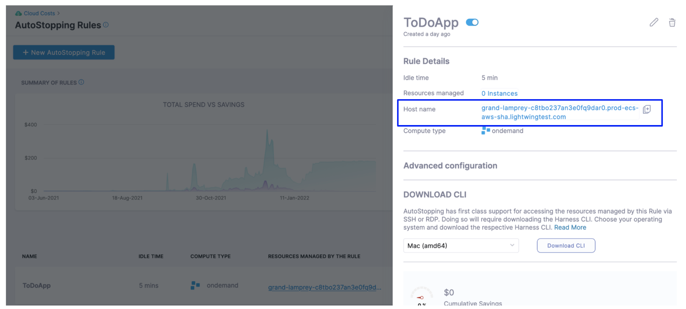 You can simply copy the hostname from the AutoStopping Rule dashboard view. Click on the AutoStopping Rule that you want to connect and copy the hostname.
