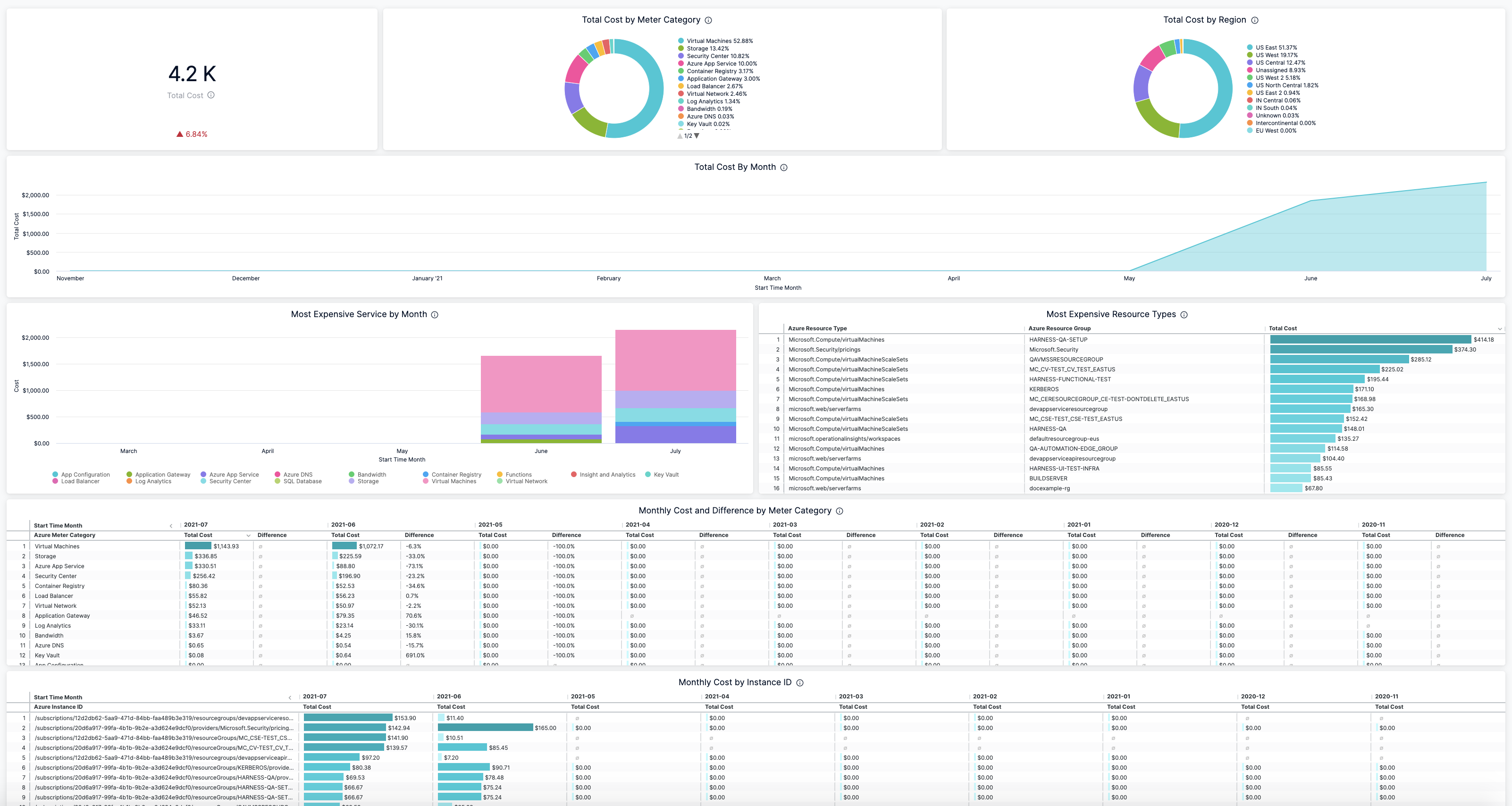 | Monthly Cost by Instance ID | The monthly cost of the instance ID. Each VM in a scale set gets an instance ID that uniquely identifies it. |