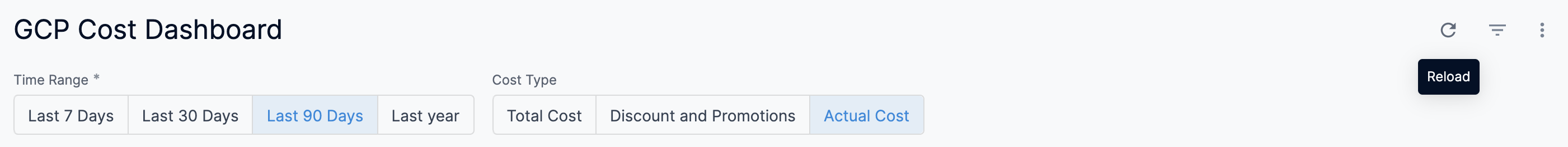 Once you have selected the Time Range and Cost Type filter, click Reload. The data is refreshed with the latest data from the database. By default, Last 30 Days and Total Cost is selected.