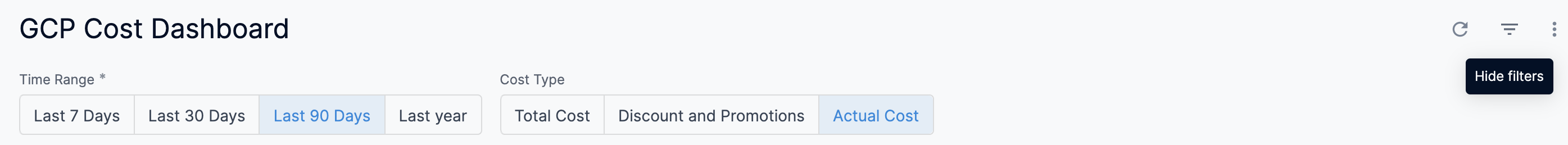 Once you have set up cost visibility for the GCP cloud account and the data is available in the Perspective, you can view the GCP Cost Dashboard. The data in the Dashboard is updated dynamically.