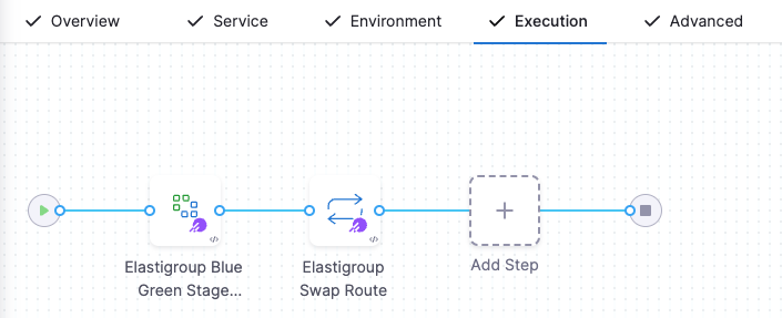 By default, Harness Spot Elastigroup Blue Green deployment pre-configures the following steps: