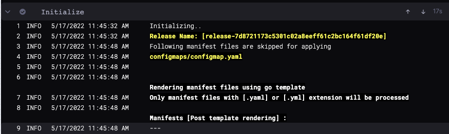 The Release name is a combination of release- and a unique string created using the Harness expression <+INFRA_KEY_SHORT_ID>.