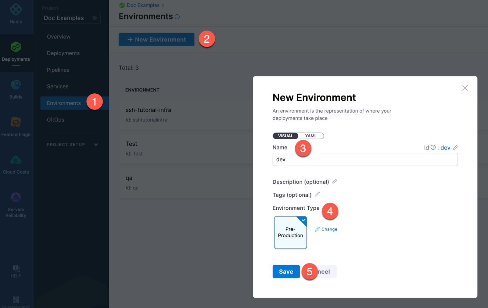 To create an Environment from outside of a pipeline, you use Environments in the navigation pane.