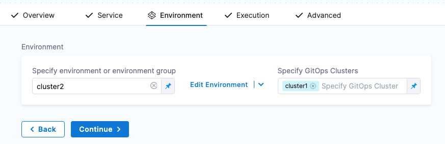 Next, when you create a pipeline, you can select the environment and the GitOps cluster(s) to use.