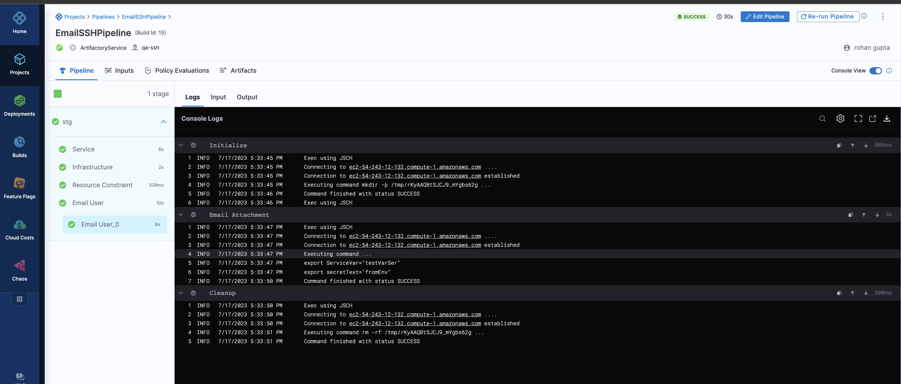 echo "artifacts.primary.imagePath" <+artifacts.primary.imagePath>Here's an example of an executed script command: