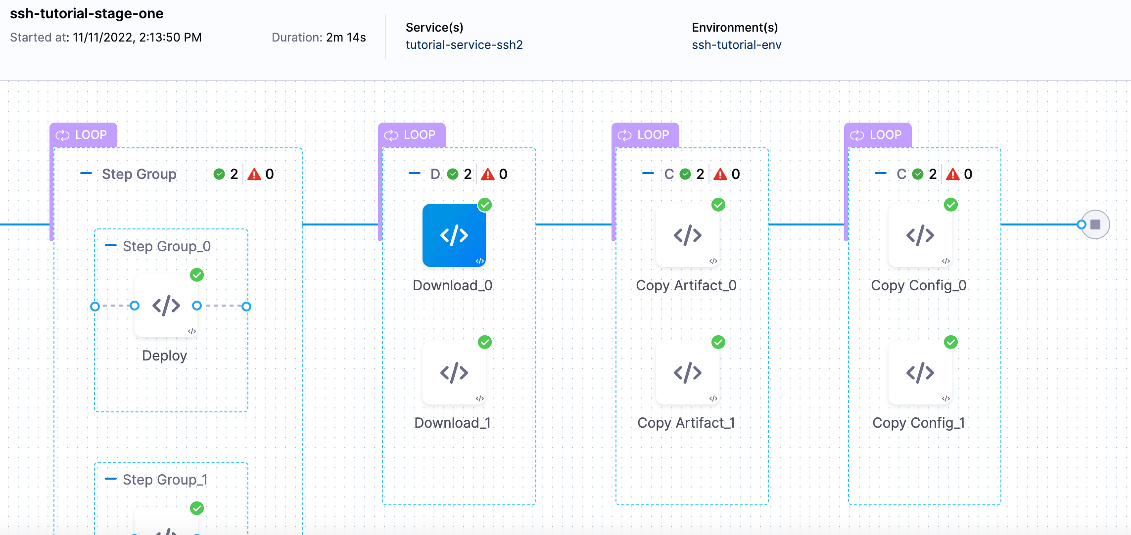 For the download artifact and copy the artifact/config commands, you do not need the looping strategy. These commands should be run once on the delegate. These commands will download the artifact and copy the artifact/config to the delegate only, not the target hosts.