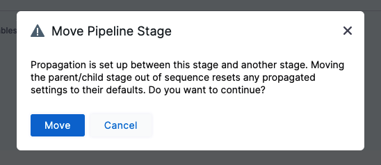 - When propagation is set up between a parent stage and child stage, moving the parent or child stage out of sequence resets any propagated settings to their defaults.