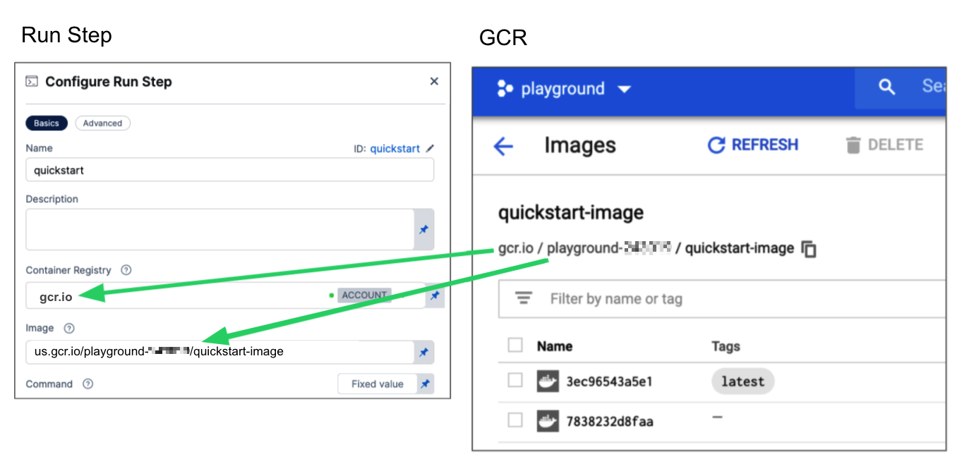 GAR: Input the FQN of the artifact you want to deploy. Images in repos must reference a path starting with the project ID that the artifact is in, for example: us-docker.pkg.dev/gar-prod-setup/harness-public/harness/cache:latest.  Configuring a Container Registry and Image settings.