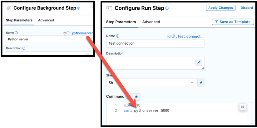 - Configure the Run step settings and then select Apply Changes to save the step.