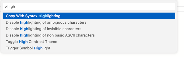 A dialog box will appear, allowing the user to search for and toggle the setting that controls how invisible characters are highlighted.