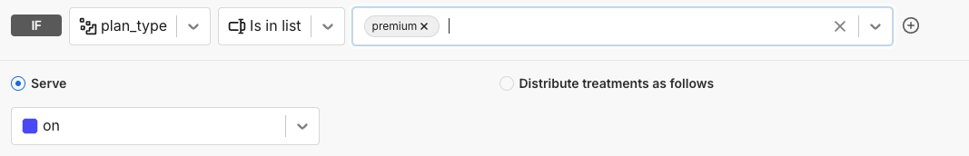 In Harness FME, on a feature flag's Definition tab, the IF dropdown menu is also an input field. In the IF dropdown field you can: