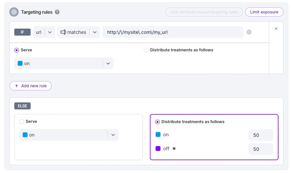1. Complete the targeting rule by filling in the values to match against and choosing the treatment(s) to serve.