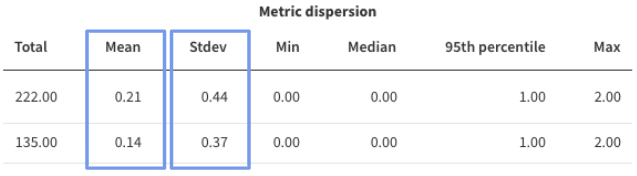 You can then find the sample size, metric value and standard deviation from the Metric Details and Trends view reached by clicking into the metric card.