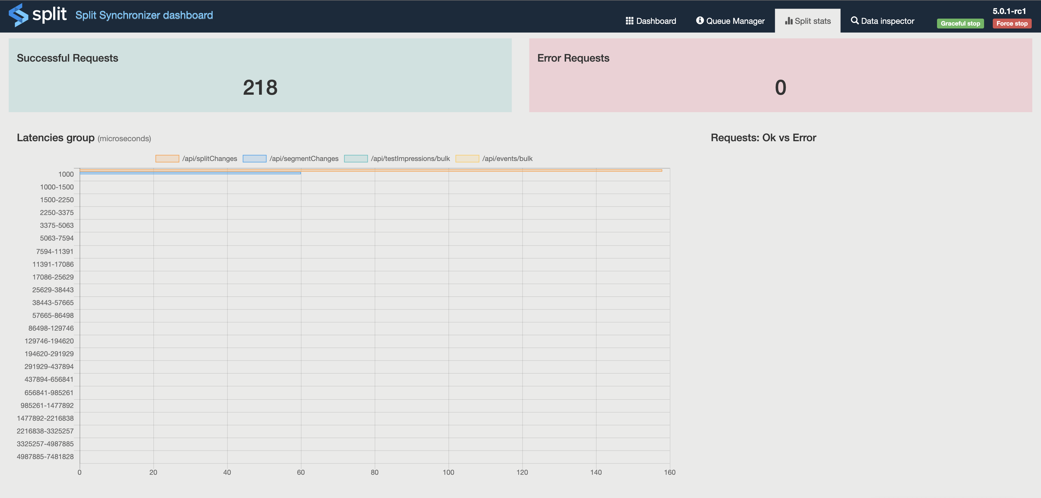 • SDK stats: Metrics numbers and a latency graph, measured between SDKs requests integration and proxy.