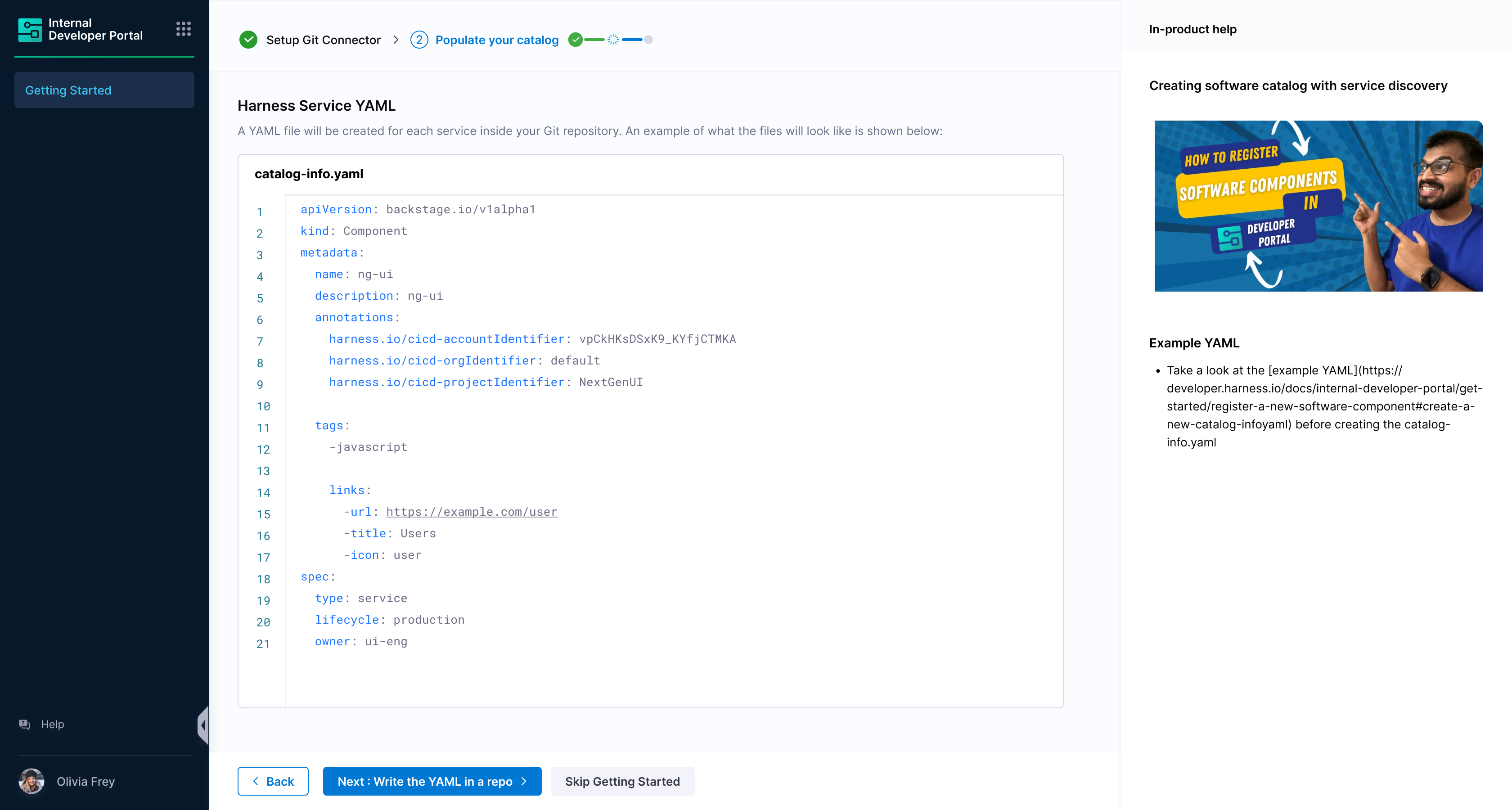- User will be shown a demo service metadata in the form of the catalog-info.yaml.