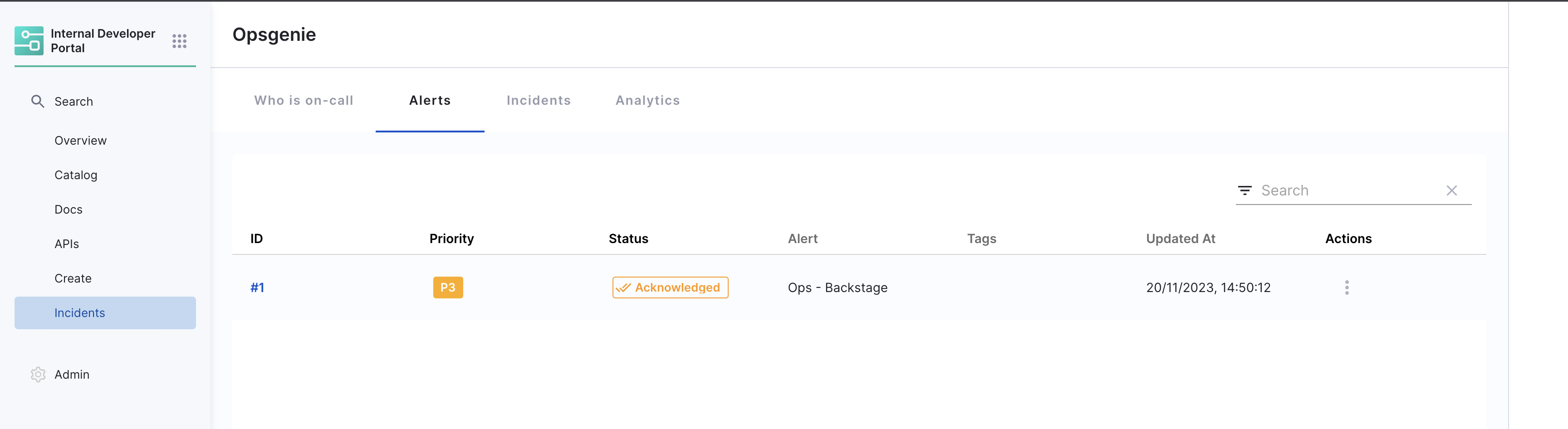 - The EntityOpsgenieAlertsCardcomponent which can display recent alerts for a specific component.