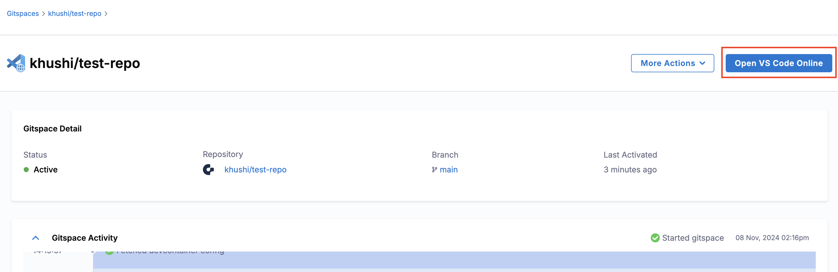 You can start by creating a new Gitspace from the Harness Open Source UI. (check the quickstart guide for more details) Please ensure that while creating one, you choose “VS Code Browser” as the selected IDE.