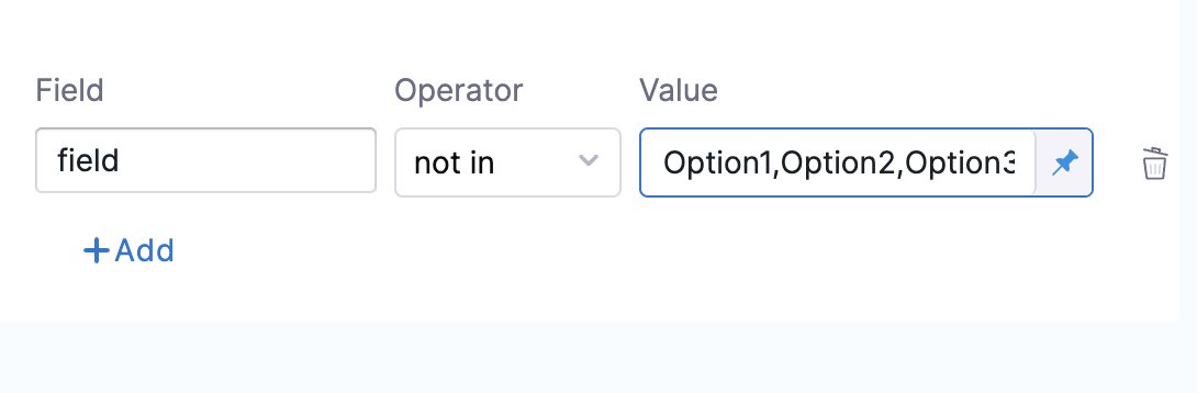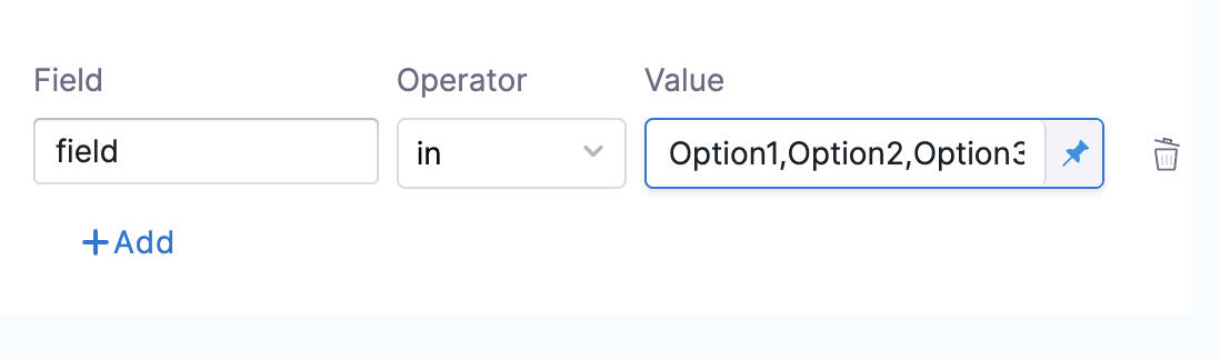 - The condition for the script output fieldto be inOption1,Option2, orOption3can be specified as: