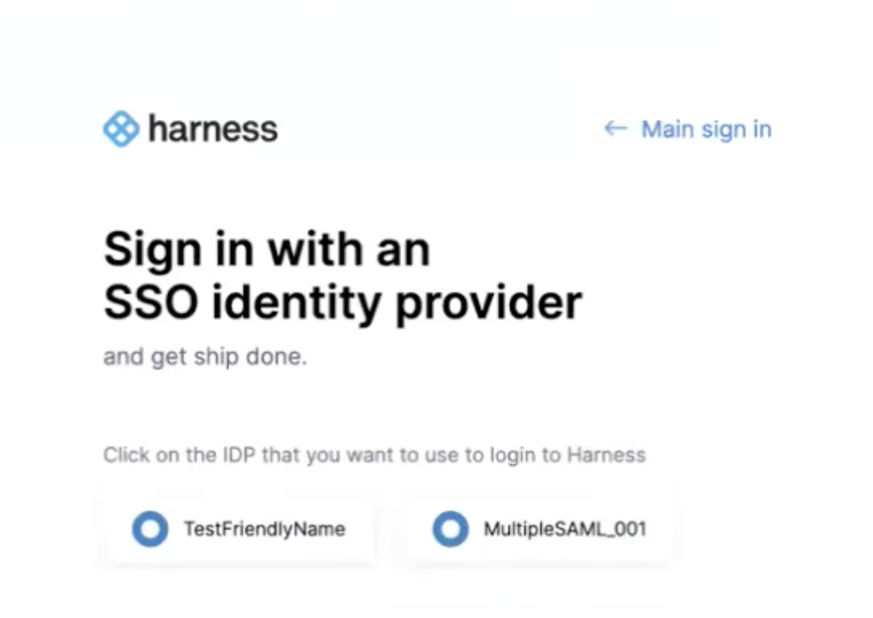 Currently, this feature is behind the feature flag PL_ENABLE_MULTIPLE_IDP_SUPPORT. Contact Harness Support to enable the feature.