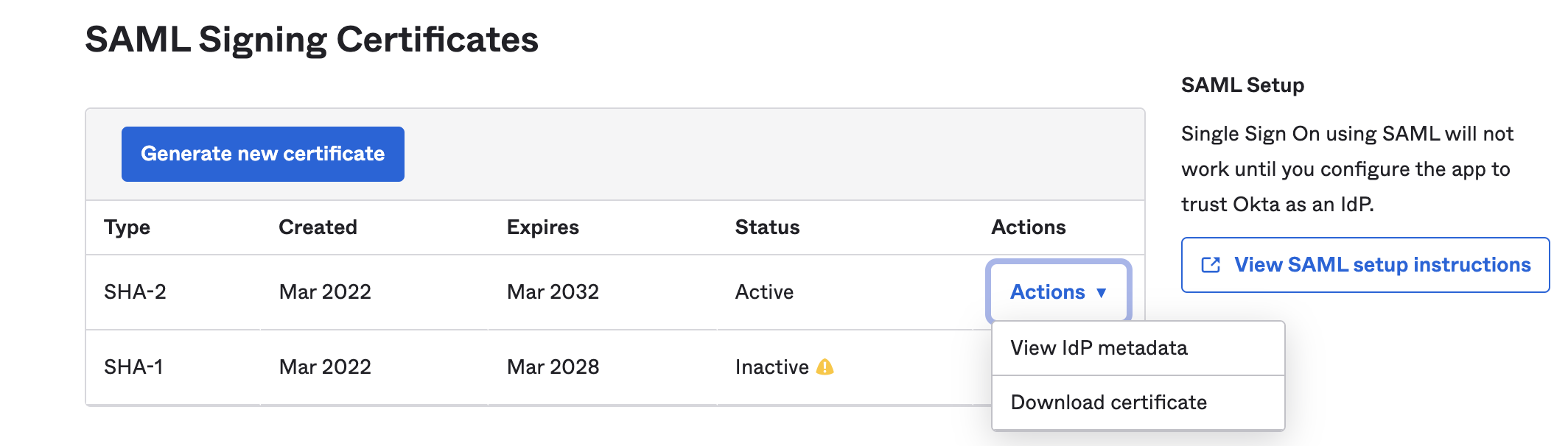 To download your encryption certificate and upload it to your IdP settings, do the following: