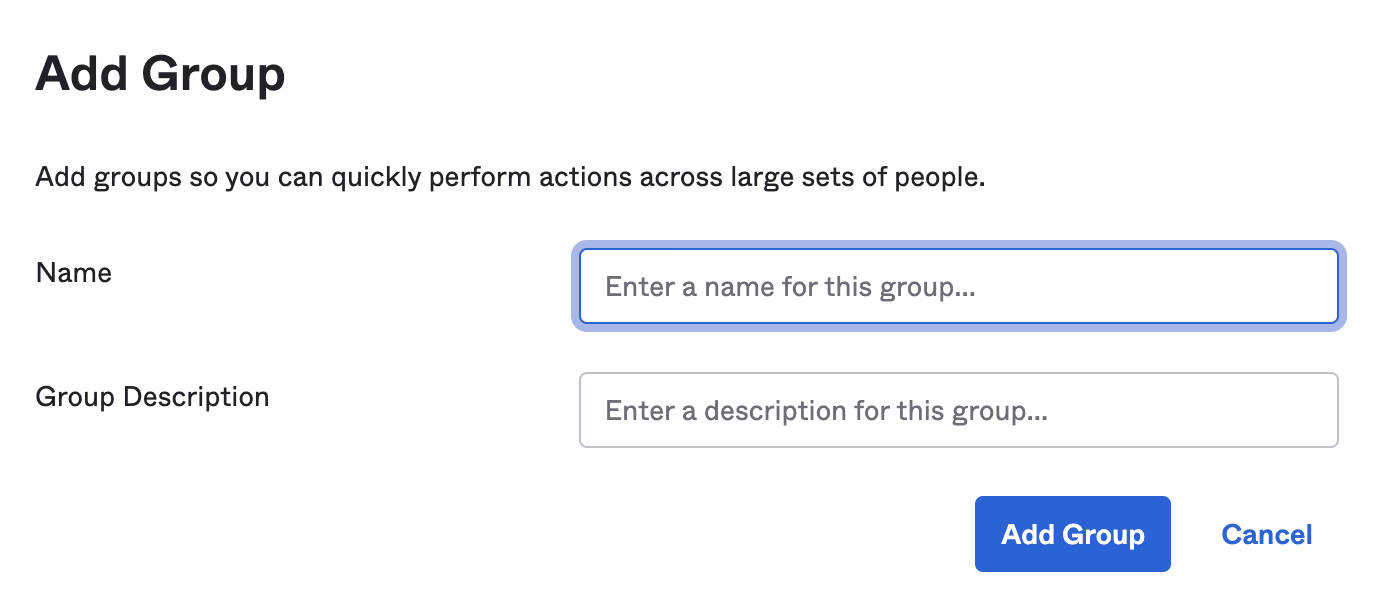 Under Directory, select Groups, then select Add Group. The Add Group dialog opens.