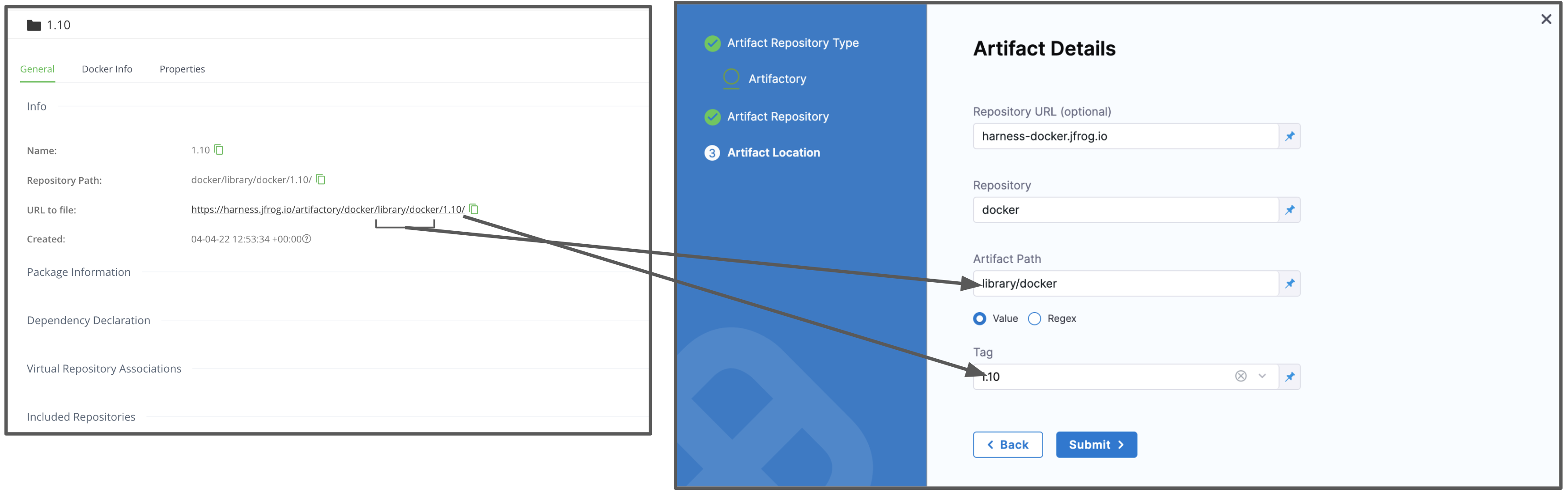 - Repository: Enter the name of the repository where the artifact source is located. Harness supports only the Docker repository format as the artifact source for deployments.