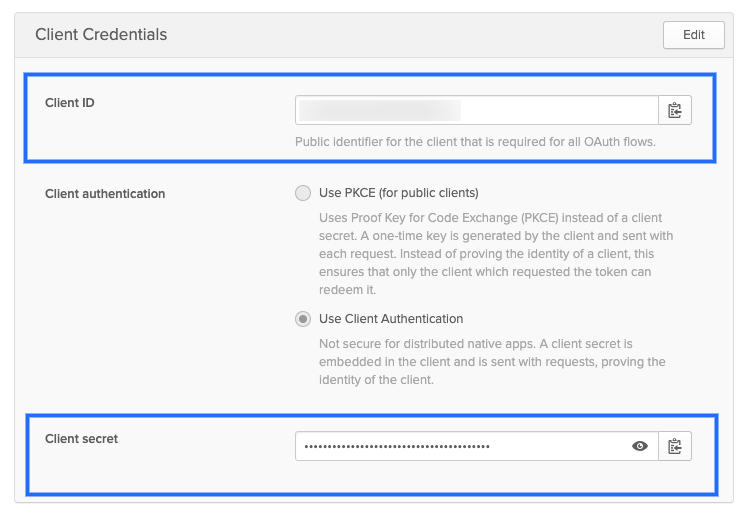 OIDC Secret: The client secret for the app. For Okta, this is located in the Client Credentials for the app.