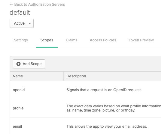 OIDC Scopes: OIDC scopes are used by an application during authentication to authorize access to a user's details, like name and picture. In Okta, you can find them in the Authorization Server Scopes tab.  If you enter multiple scopes, use spaces to separate them.