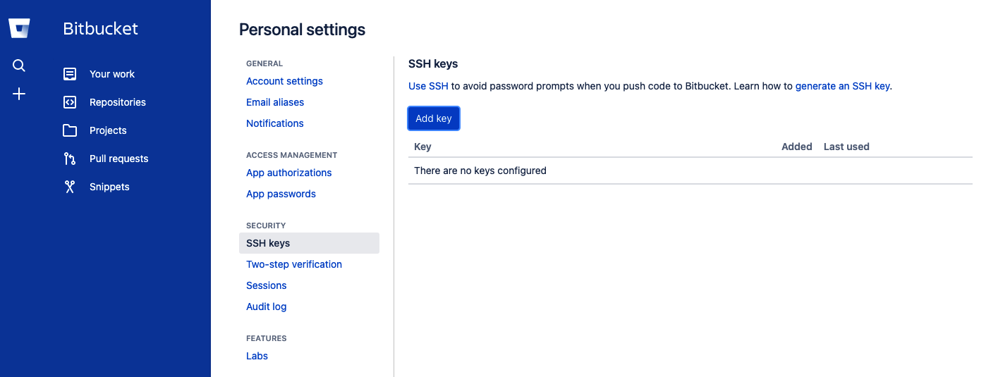 - See also: Set up an SSH key from Bitbucket.