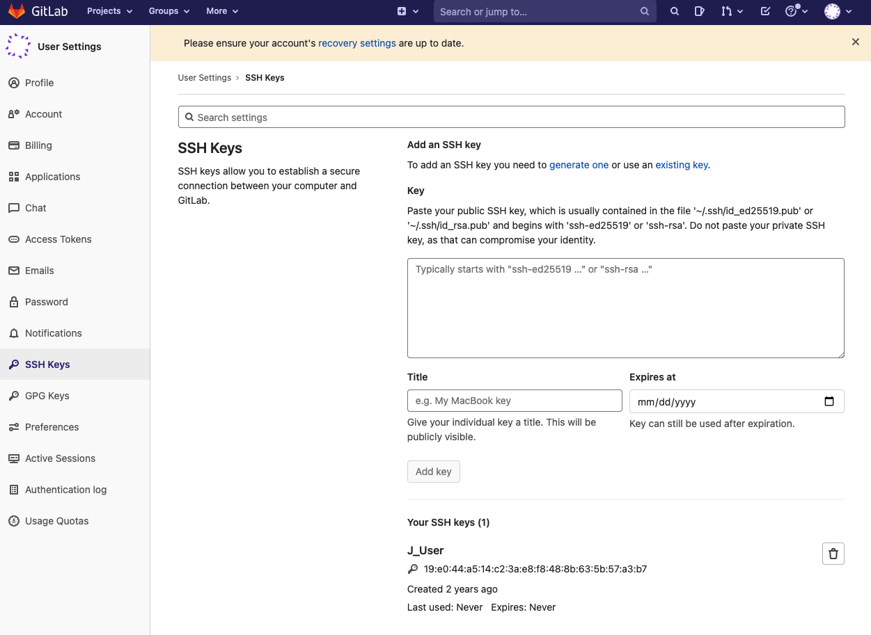 - SSH Key. This is the private key. The corresponding public key is added to your GitLab account settings.