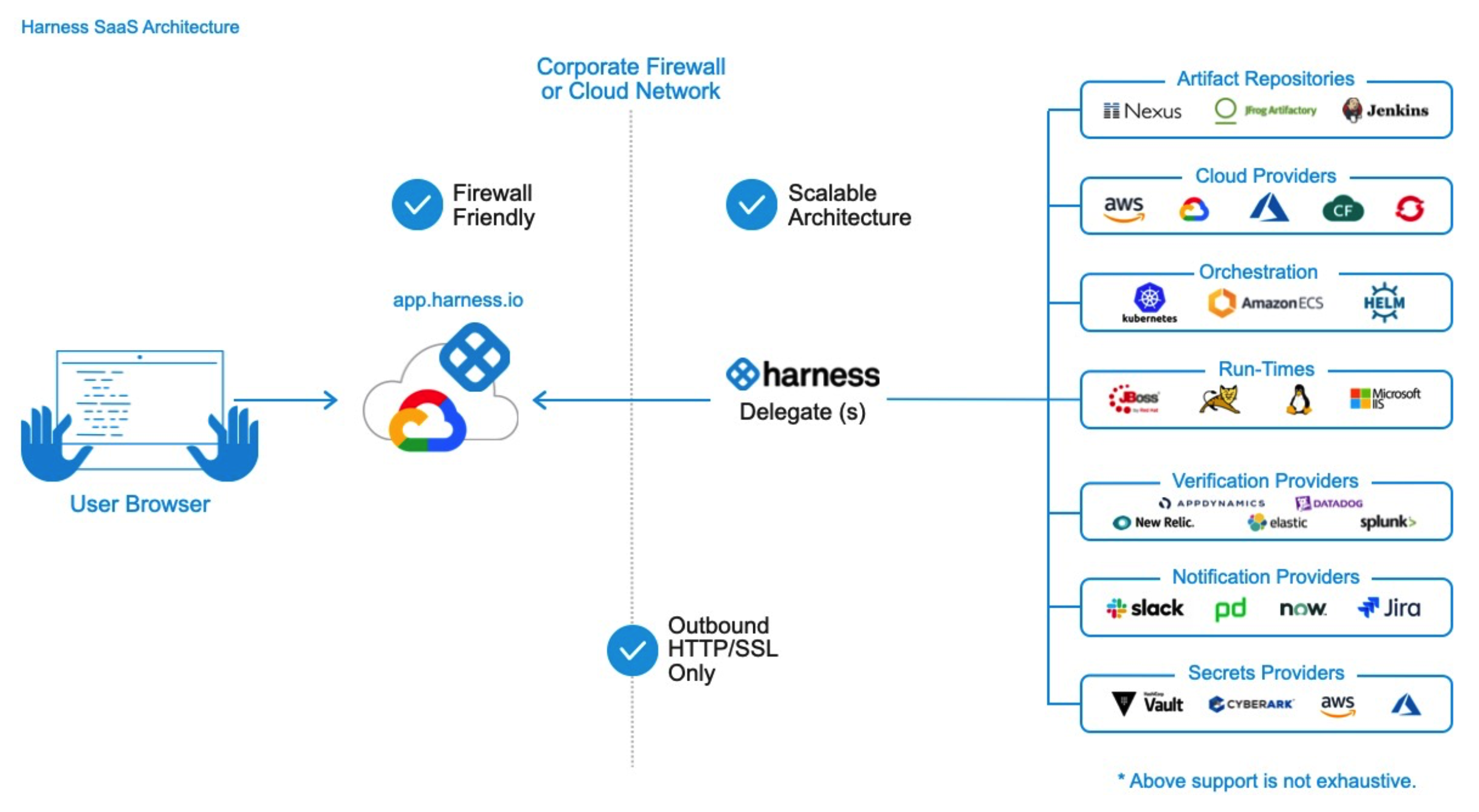 - Delegate requirements: The delegate needs API/SSH/HTTP access to the providers you add to Harness, such as: