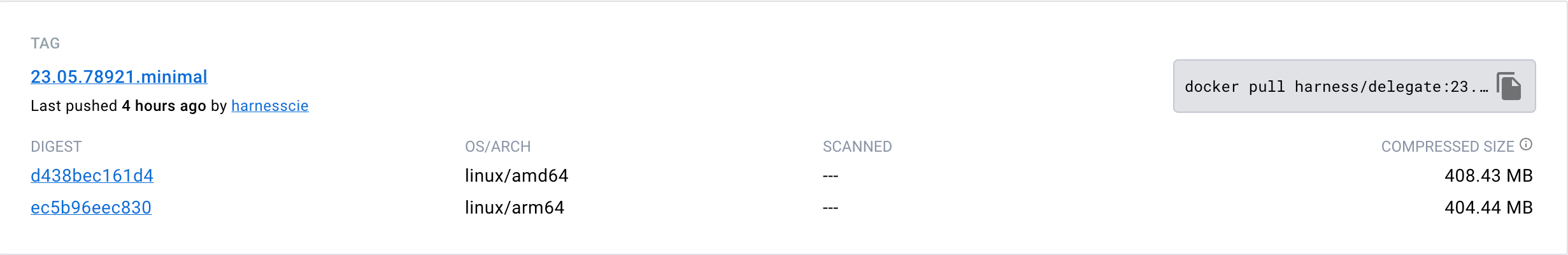 Security Scanned: The image undergoes rigorous scanning processes to ensure that it is devoid of any high-risk or critical vulnerabilities. This makes it an optimal choice for organizations or users who have stringent security requirements. Harness aims to minimize critical/high vulnerabilities within this image. Achieving complete mitigation isn't always possible due to the continual discovery of vulnerabilities in third-party libraries/tools without immediate remediation.
