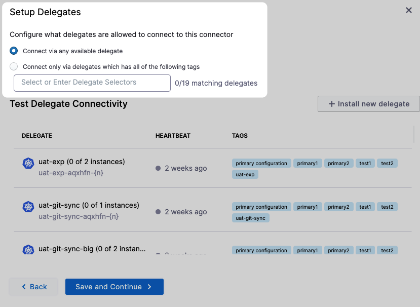 You can use delegate selectors at multiple places, such as the pipeline, stage, and step levels.