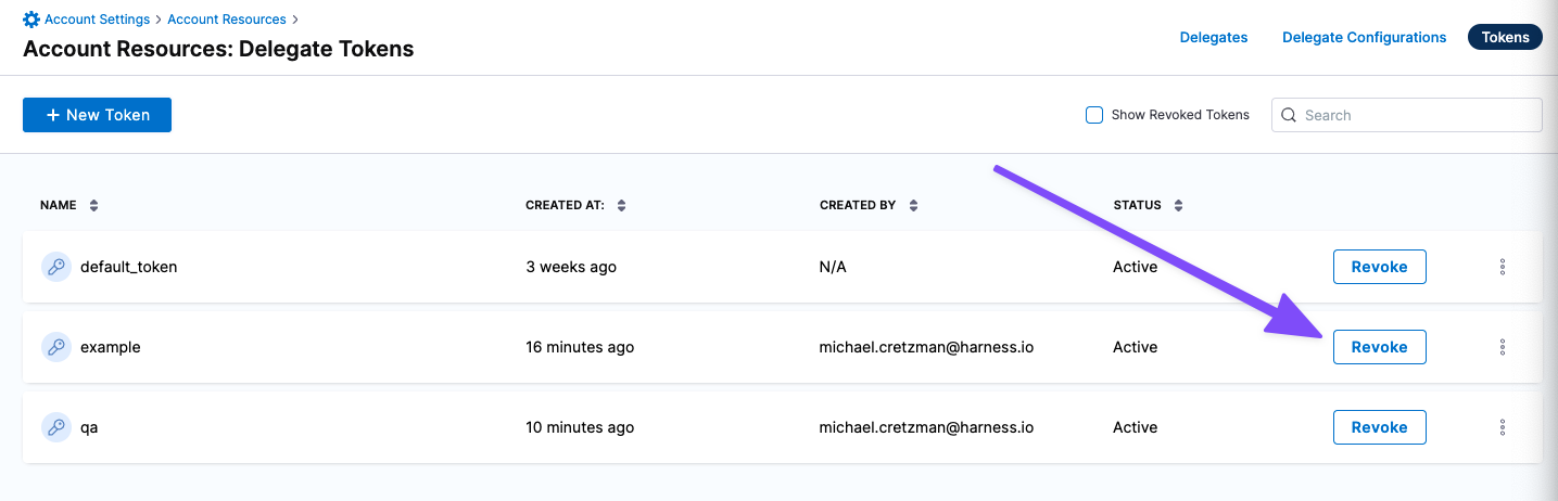 Harness uses delegate tokens to encrypt communication between Harness Delegates and the Harness Manager. By default, when a new Harness account is created, all Harness Delegates in that account share the same token.
