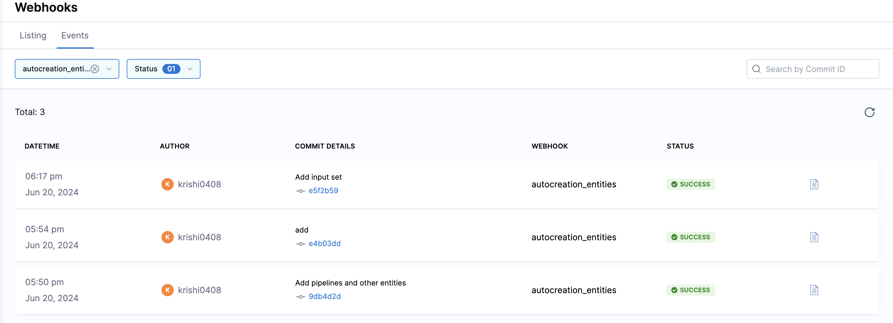 After saving this YAML file, we will push it to our Git repository, for which we have registered the webhook in Harness. We can then view this event on our Webhook Events page.