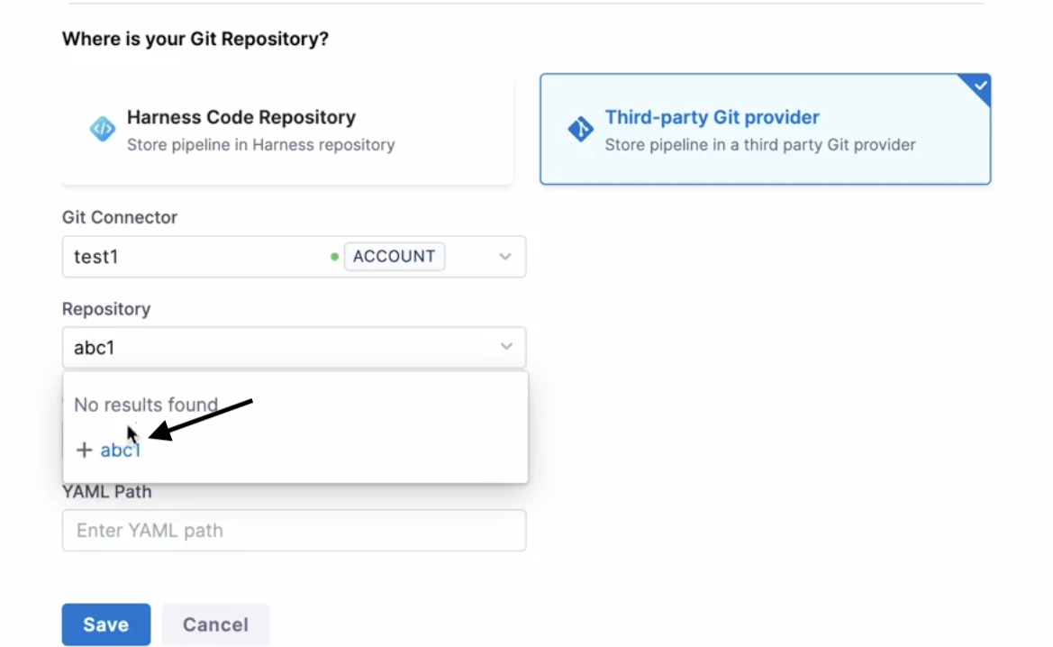 - Add a remote pipeline in Harness, and it gets added to your specified Git repo and branch.