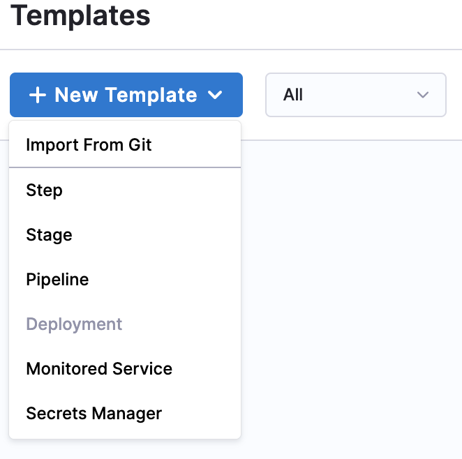 Click New Template and then click Import From Git.  The Import Template From Git settings appear.
