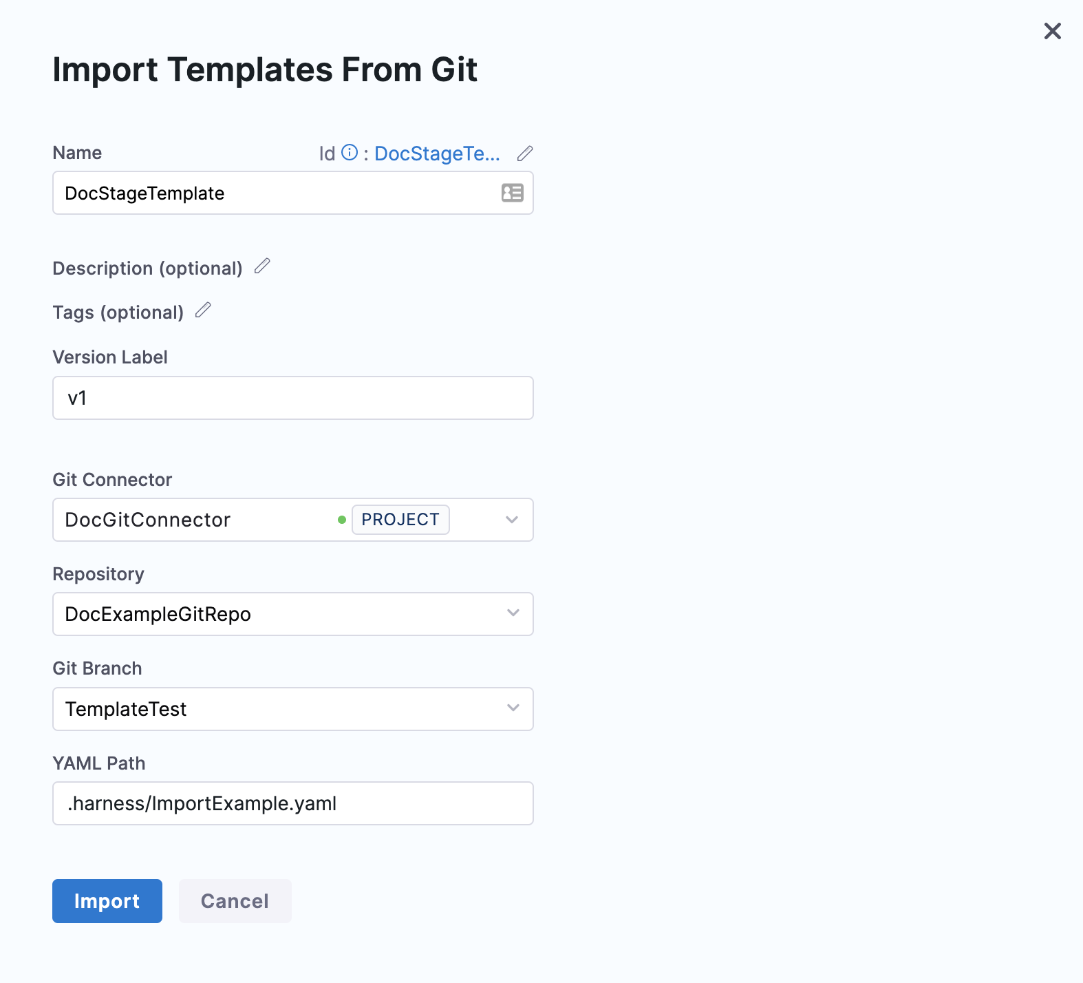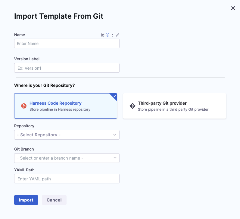 Enter the YAML Path from where you want to import the template. All your configurations are stored in Git in the Harness Folder.