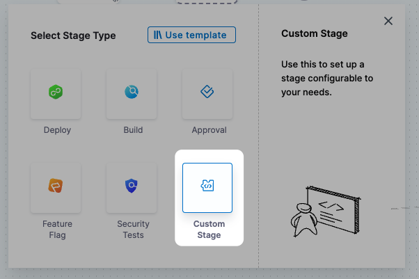 Unlike the Build, Deploy, or Approval stages, the Custom stage has no predefined functionality or requirements. The Custom stage provides flexibility to support any use case outside of the standard stages.