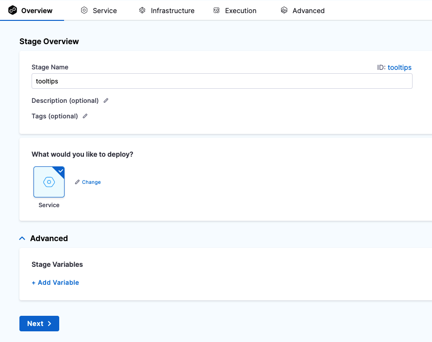 • You must provide a few initial settings to add a stage to a pipeline, and then you can configure additional settings, such as Infrastructure or Stage Variables after adding the stage.
