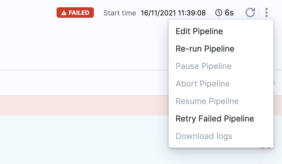Select More Options (⋮), and then select Retry Failed Pipeline.