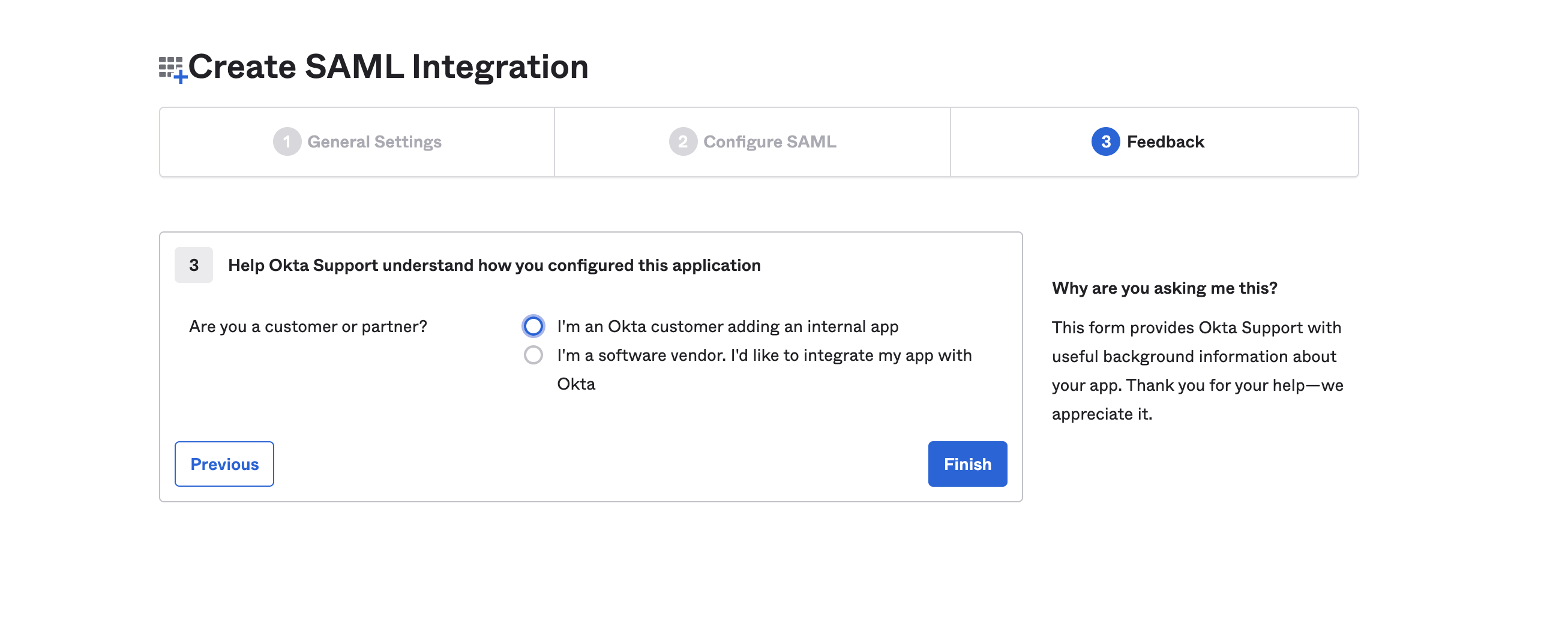 - In the Feedback options, select the relevant option, and then select Finish.