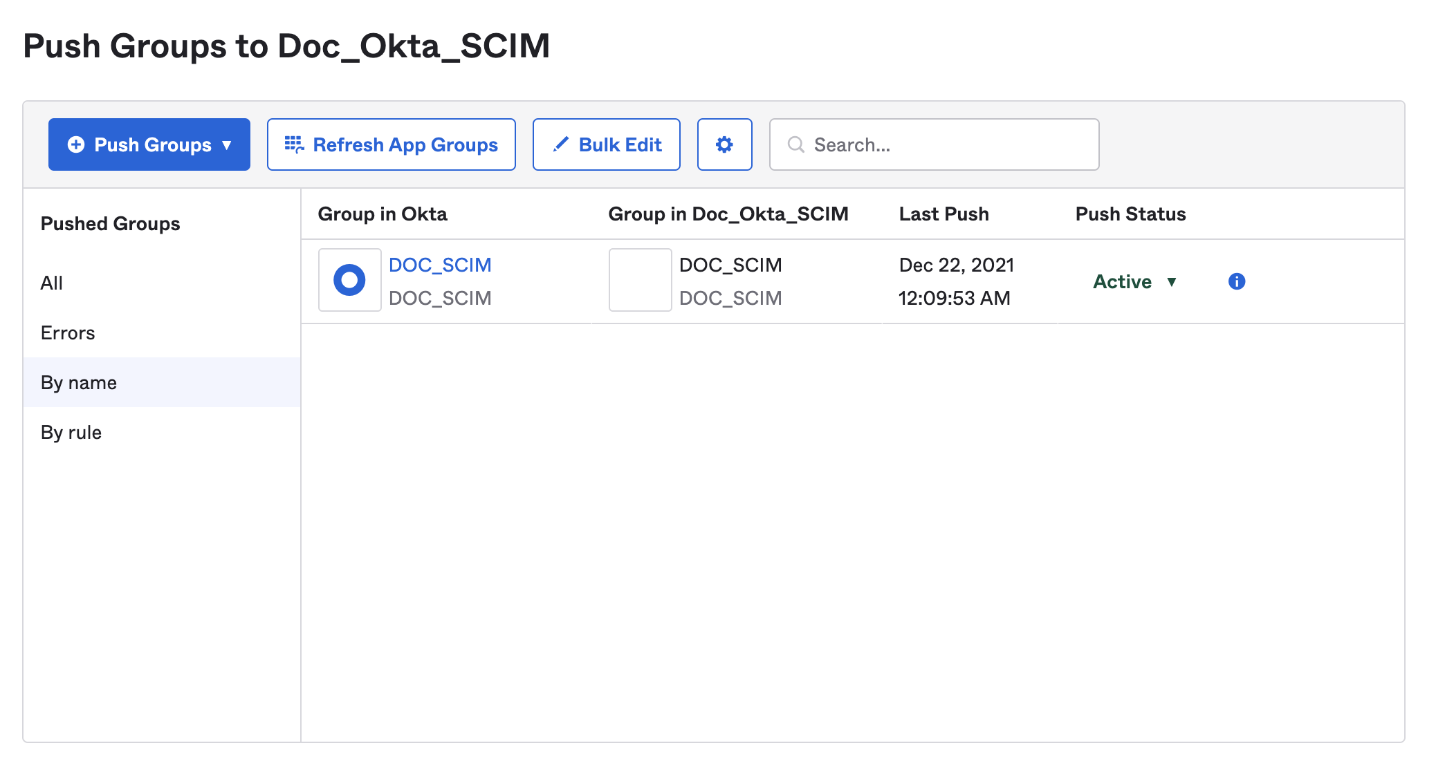 You can check the status of pushed groups in your Harness Okta app.