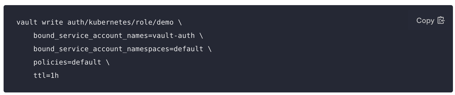 This option uses a Kubernetes Service Account Token to authenticate with Vault. With this method of authentication, you can easily add a Vault token into a Kubernetes pod.